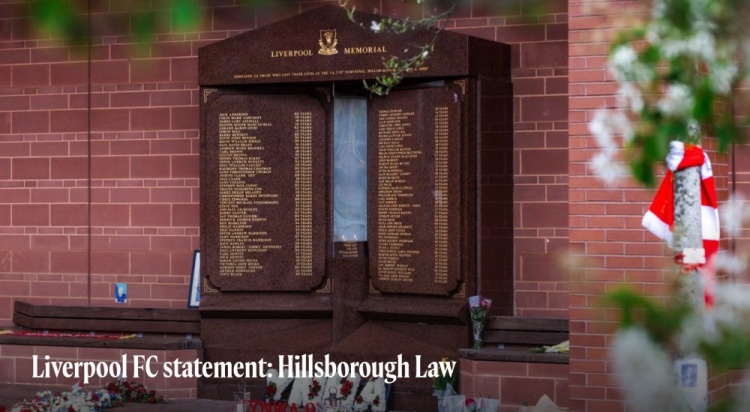利物浦足球俱乐部发言人表示:“利物浦足球俱乐部欢迎希尔斯堡法案的出台及其即将实施。这项具有里程碑意义的立法是遇难者家属、幸存者和活动人士不懈努力的结果,他们为追求真相和正义奋斗了三十多年。 我们向这些家庭致敬,他们在面对难以想象的损失和不公正时表现出的坚定决心和尊严激励了一个保护他人的运动。他们的勇气和无私不仅会改变法律,还会改变未来几代人的生活。”